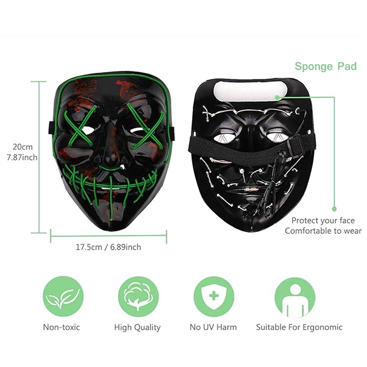 LIGHT UP YOUR HALLOWEEN – This LED Halloween mask works perfect for any occasion, such as Purge Themed Halloween, Rave Parties, Clubs, Masquerades, Costume Parties, Carnival, and other events.